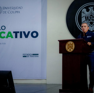 En su intervención, el rector Christian Torres Ortiz habló de un “momento histórico” que estaba viviendo la Universidad con la presentación del Modelo Educativo 2026. “Sin temor a equivocarme, el nuevo modelo educativo de la Universidad de Colima es uno de los grandes legados que estamos dejando todas y todos juntos para la institución”.