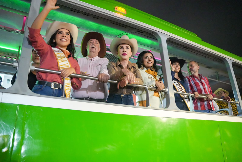 La Presidenta de Villa de Álvarez Tey Gutiérrez Andrade y dirigentes transportistas, dieron la noche de este miércoles a Abril Montserrat Requenes Chavarín, el título de Reina de los Transportistas, esto en el marco de los Festejos Charrotaurinos de Villa de Álvarez 2026.